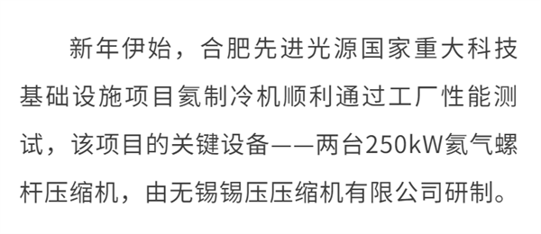 錫壓氦氣螺桿壓縮機助力合肥先進光源國家重大科技基礎設施項目