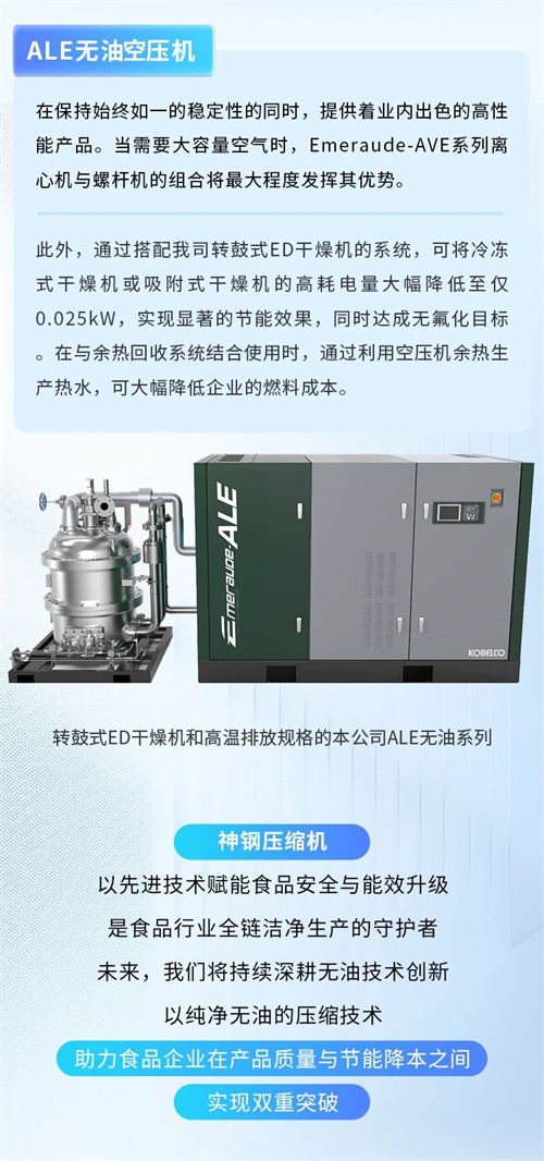 神鋼ALE系列無油空壓機賦能食品生產安全與企業能效升級